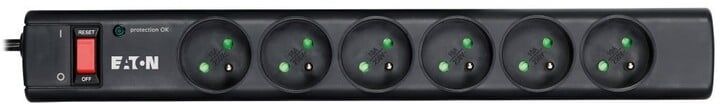 Eaton Protection Strip 6 Praktična prenapetostna zaščita za računalnike in elektroniko ima šest vtičnic. Celoten opis