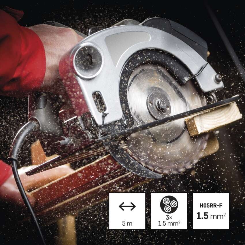 vodnik: H05RR-F • dolžina: 5 m • tip izolacije: guma • barva: črna • prerez vodnika: 3× 1,5 mm² • tip: SY-11 Celoten opis