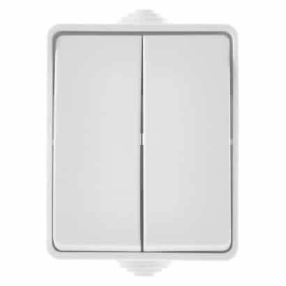 Stikalo dvojno nadgradno za vlažne prostore IP55 belo Celoten opis