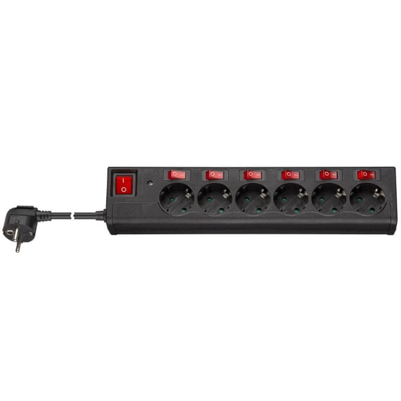 • Podaljšek z ločenimi, osvetljenimi stikali za vsako od 6× vtičnic in dodatnim glavnim stikalom za celotno palico