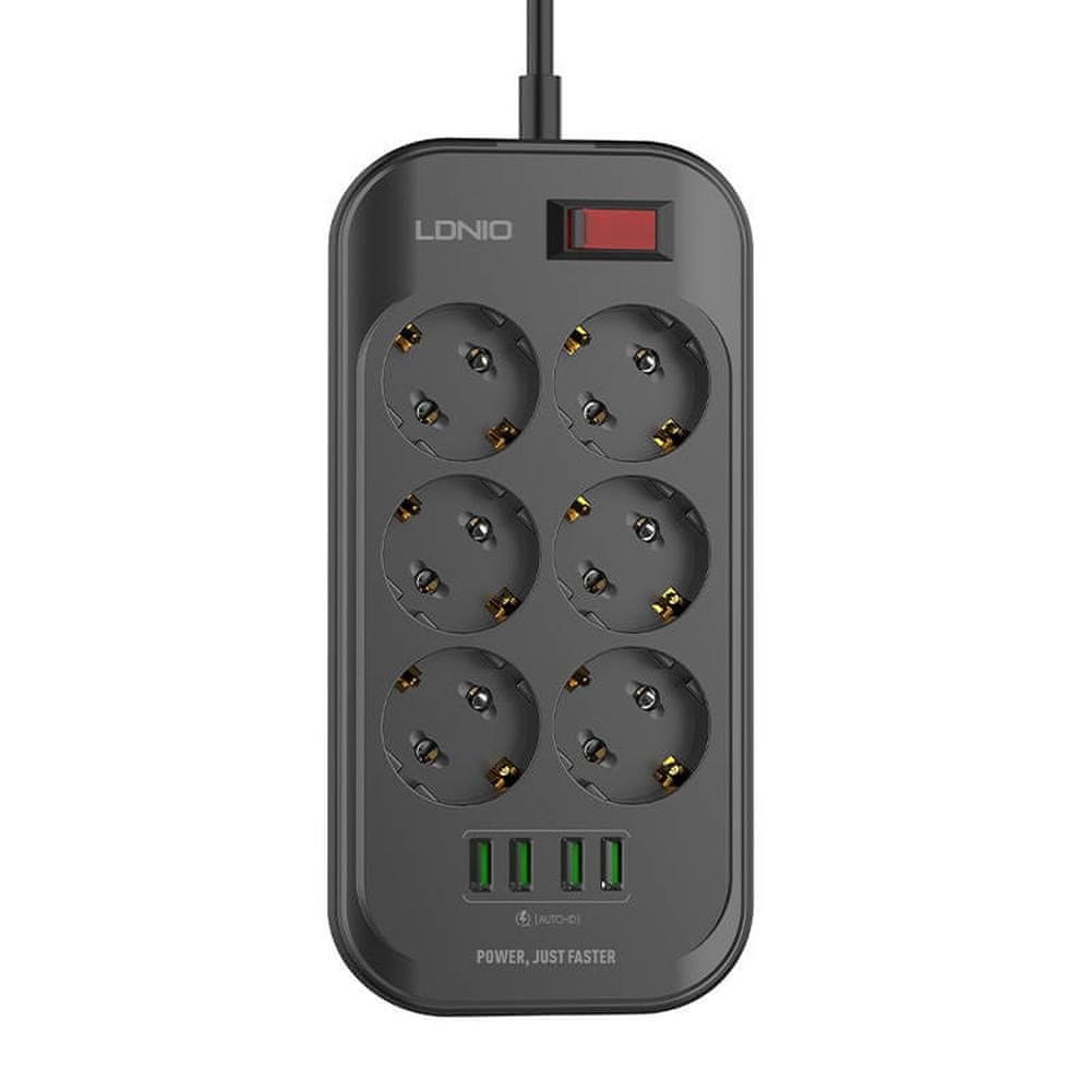 LDNIO Električni razdelilec 6 vtičnic 230V 4x USB polnilec 3,4A črn 2m