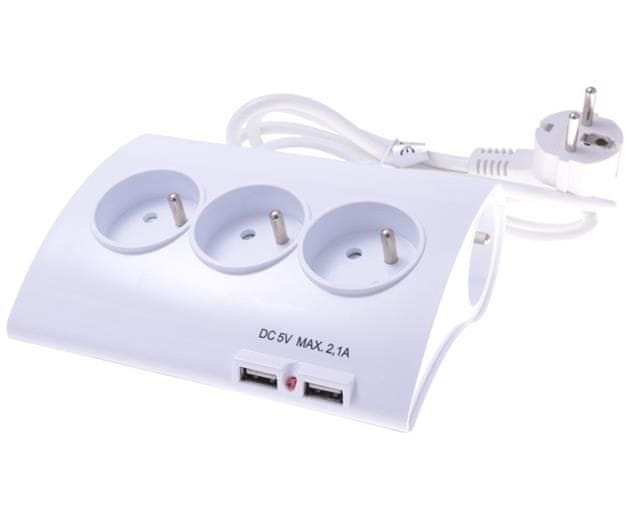 PremiumCord podaljšek 230 V 1,5 m, 5 vtičnic + stikalo + 2 x USB 2A