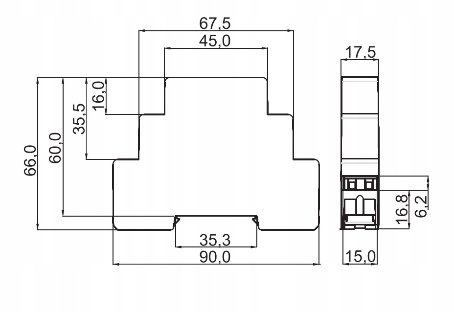 • Dimenzije:enomodulni (17,5 mm) 90×17,5×66 mm