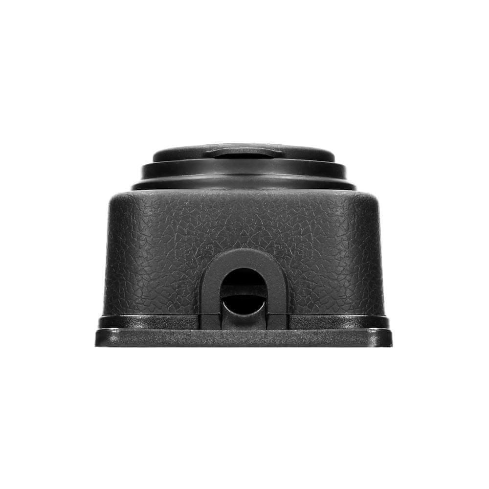 Delavniški razdelilnik, zaščita IP44. Ima eno vtičnico (2P+E) z gumijastim pokrovom za zaščito pred brizganjem vode in prahom. Ima luknjo za enostavno obešanje na varno mesto in štiri luknje za vijake za trajno pritrditev na delovno mesto. Kabelski priključek je skrit pod odstranljivim pokrovom. Vgrajena gumijasta kabelska uvodnica omogoča napeljavo kablov. Razdelilnik ima izjemno nizek profil, 5 cm.