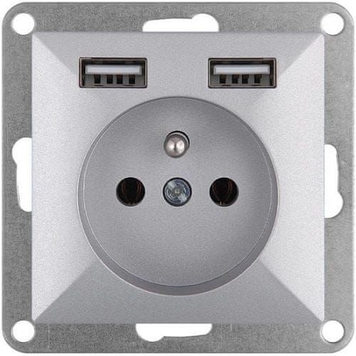 shumee PEARL ENOJNA VTIČNICA P/TZ/U 2*USB 2A, 5V SREBRNA - E+9002662