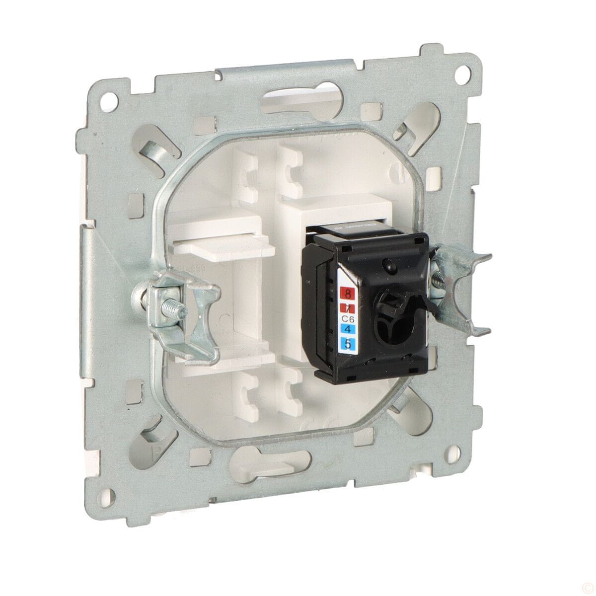 Računalniška vtičnica RJ45, kategorija 6, enojna z zaščito pred prahom (modul), montaža s kremplji ali vijaki, bela Celoten opis