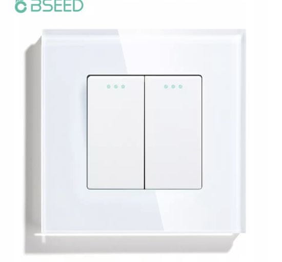 Dvojno stekleno stikalo za luči v beli barvi BSEED. Ponujeno stikalo za luči je preprosta in elegantna naprava. Elegantna sprednja plošča je izdelana iz 4 mm debelega kaljenega stekla, zaradi česar je zelo trpežna. Stikala so na voljo v 4 barvah: beli, črni, zlati in srebrni. Visokokakovosten izdelek priznanega podjetja BSEED. Sprednja plošča je v celoti bela. Kovinski okvir povezuje vse elemente v celoto, kar potrjuje kakovost uporabljenih komponent pri izdelavi stikala. Ponujena stikala so po videzu in kvaliteti izdelave primerljiva z vrhunskimi stikali, ki so na voljo na trgu, vendar po temu primerno nižji ceni. Namestitev stikala Upoštevajte vrstni red namestitve, da preprečite težave z dotikom stikala. 1. Odstranite sprednjo ploščo stikala. 2. Povežite ustrezne žice. 3. Privijte okvir stikala na električno omarico. 4. Zamenjajte sprednjo ploščo stikala. 5. Priključite napajalnik. 6. Počakajte približno 2 minuti, med katerima stikalo umeri dotik. Stikalo je pripravljeno za uporabo. Povežite žice stikala kot pri standardnih stikalih. Kot L priključimo tokovno žico – napajalnik in kot L1 izhodno žico na tokokrog (sprejemnik – svetilka, luč itd.) Specifikacija: Barva – bela Število tipk – 2 Standard: EU Napajalna napetost: 100–240V AC Maksimalna moč bremena: 3–300W / na kanal – 500W skupaj Material iz katerega je izdelano stikalo: ABS / kaljeno steklo Dimenzije sprednje plošče: 86 mm * 86 mm * 9 mm Montaža z vijaki na standardno 60 mm električno omarico Naprava ima preizkuse skladnosti: CE, ROHS. V naši ponudbi so različne kombinacije stikal za luči in električnih vtičnic.