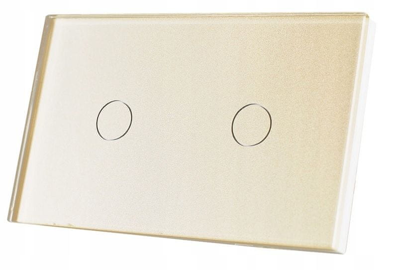 Dvojno stikalo na dotik 157mm, za dvojno električno omarico, izdelano iz kaljenega stekla in visokokakovostnih komponent. Ponujeno stikalo za luči je preprosta in elegantna naprava. Sprednja plošča je izdelana iz kaljenega stekla debeline 4 mm. To so visokokakovostni materiali, zaradi katerih je stikalo zelo trpežno in elegantno. Prvič, odporen je na praske in razbarvanje ter vodoodporen, zato ga ne motijo mokri prsti in je enostaven za čiščenje. Poleg tega je ognjevarna, kar povečuje varnost. Gumbi na sprednji plošči nežno svetijo v modri barvi, kar olajša iskanje stikala v temi. LED lučka gumba sveti ves čas. Ko je lučka prižgana, sveti močneje, ko je lučka ugasnjena, pa sveti nežno, da ne moti na primer med spanjem. Visokokakovosten izdelek priznanega podjetja BSEED. Sprednja plošča je v celoti zlata, okvir pa bel. Kovinski okvir povezuje vse elemente v celoto, kar potrjuje kakovost uporabljenih komponent pri izdelavi stikala. Namestitev stikala Upoštevajte vrstni red namestitve, da preprečite težave z dotikom stikala. 1. Odstranite sprednjo ploščo stikala. 2. Povežite ustrezne žice. 3. Privijte okvir stikala na električno omarico. 4. Zamenjajte sprednjo ploščo stikala. 5. Priključite napajalnik. 6. Počakajte približno 2 minuti, med katerima stikalo umeri dotik. Stikalo je pripravljeno za uporabo. Povezava je izvedena kot pri standardnih stikalih. Kot L priključimo trenutni kabel – napajalnik, izhod za kanale (sprejemniki, svetloba, npr. svetilke itd.) pa priključimo na L1 v prvem modulu oziroma L1 v drugem modulu. Specifikacija: Barva – zlata Število gumbov – 2 (1+1) Standard: EU Napajalna napetost: 100–240V AC Maksimalna moč bremena: 3–300W/na kanal – 500W skupaj Material iz katerega je izdelano stikalo: ABS / kaljeno steklo Dimenzije sprednje plošče: 157mm * 86mm * 9mm Montaža z vijaki na standardno dvojno 60mm električno omarico Naprava ima teste skladnosti: CE, ROHS. V naši ponudbi so različne kombinacije stikal za luči in električnih vtičnic.