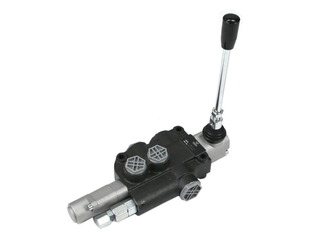 VOIMA 80L enodelni hidravlični razdelilnik s plavajočim delom – monoblok z vzporednim sistemom in nevtralnim središčnim položajem. V nevtralnem položaju olje kroži med hidravlično črpalko in rezervoarjem. Del: Plavajoči (z zapahom).