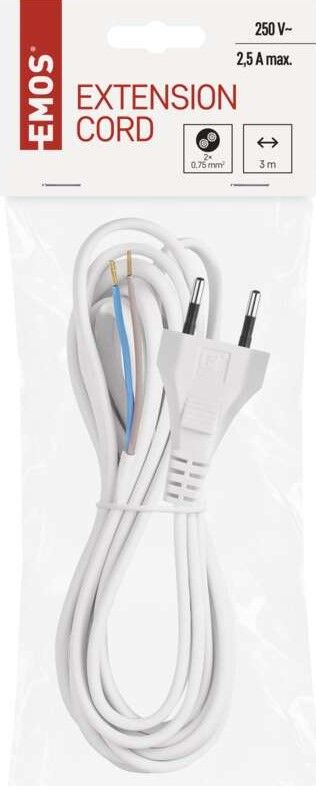 EMOS S15273 priključni kabel, PVC, 2×0.75 mm, 3 m, bel. Celoten opis