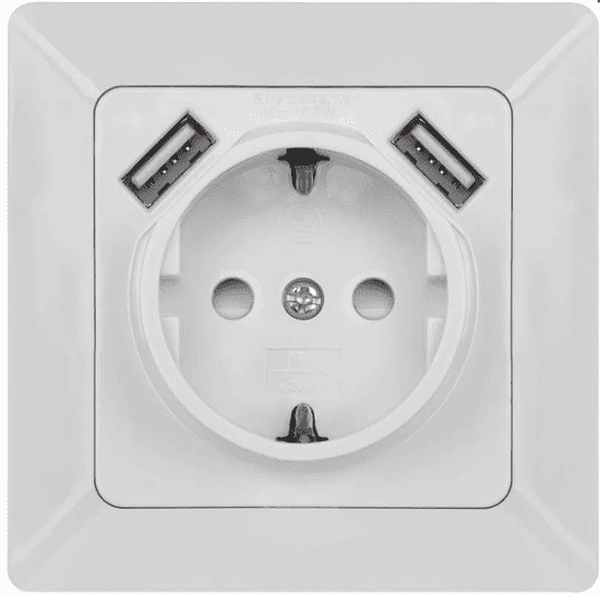 | Izdelek | Vtičnica enojna z bočnim zaščitnim kontaktom in USB izhodom (2,1 A max.) |