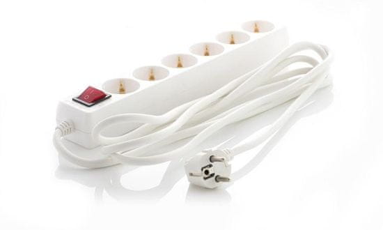 Podaljšek se ponaša z dolžino kabla 3 m, 6 navadnimi vtičnicami in z stikalom.