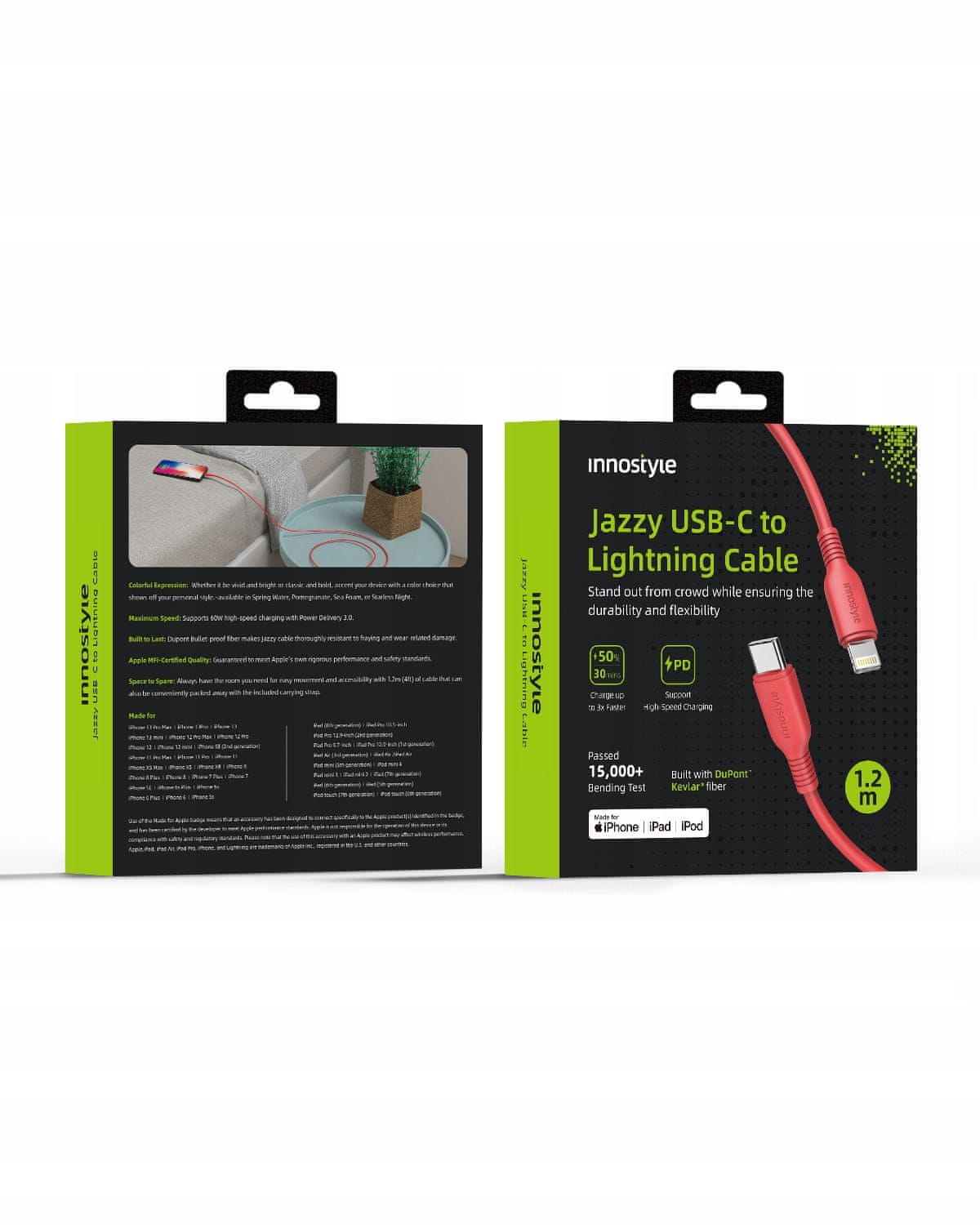 - 1 x Innostyle Jazzy – kabel USB-C – Lightning MFI 1,2 m