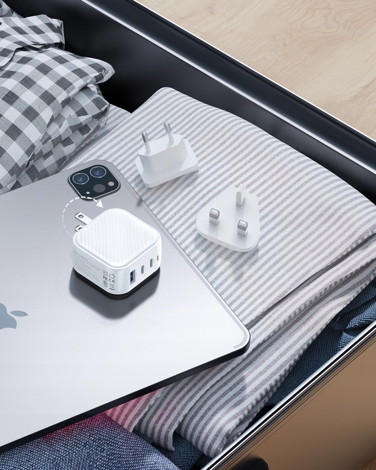 Tu je MiniCube – mojstrska simfonija polnjenja. V primerjavi s tradicionalnimi polnilniki MiniCube preseneča s svojo kompaktnostjo, saj je 46 % manjši, hkrati pa ponuja več priključkov in zmogljivo 65W moč zaradi inovativne tehnologije GaN. Prepustite se eleganci in zmogljivosti, ki ju ne more zagotoviti noben drug polnilnik.