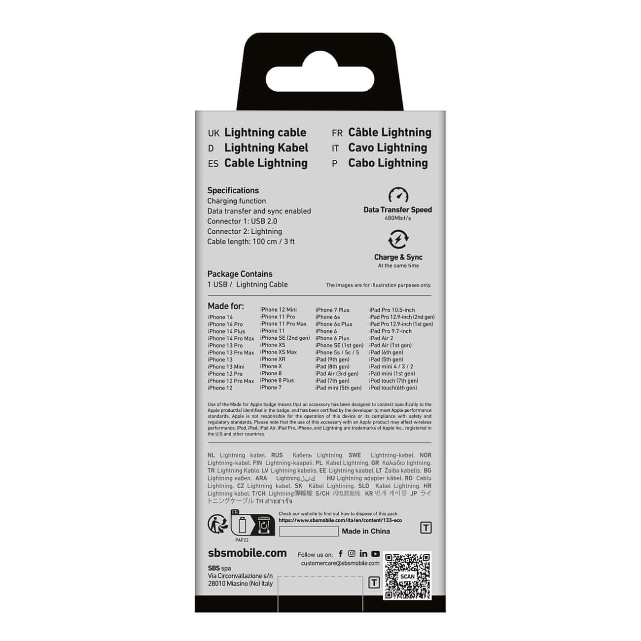 Kabel SBS TECABLEUSBIP589K omogoča hkratno polnjenje in prenos podatkov, kar ga naredi idealnega za intenzivno uporabo. Prenesite fotografije, videoposnetke in dokumente, ne da bi izgubljali dragoceni čas z ločenimi postopki.