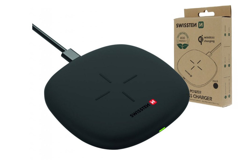 Brezžični polnilnik Swissten ima visoko moč 10 W, ki omogoča hitrejše polnjenje pametnega telefona (mora podpirati brezžično polnjenje). Nedrseče lastnosti zagotavljajo udobno polnjenje. Priložen je 1,5 m dolg kabel USB/USB-C. Ekološko pakiran izdelek je brez nepotrebnih plastičnih lističev. Embalaža je okolju prijazna.