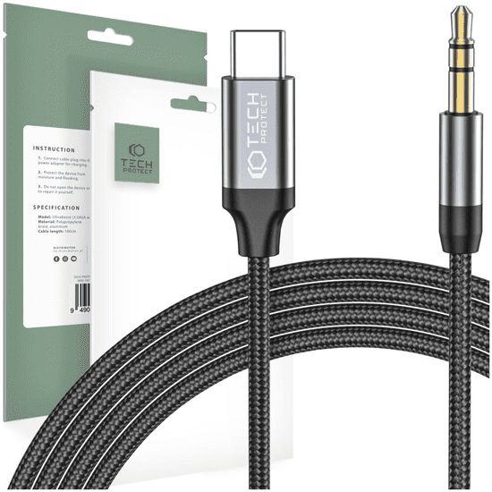 Tech-protect TECH-PROTECT ULTRABOOST TYPE-C DO AUX MINI JACK 3.5MM KABEL 100CM ČRN