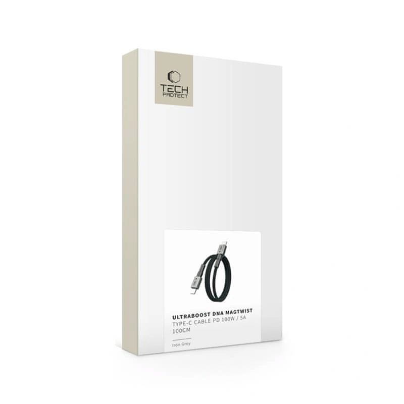 Tech-protect Ultraboost MagTwist kabel USB-C 100W 5A PD 1m, siva