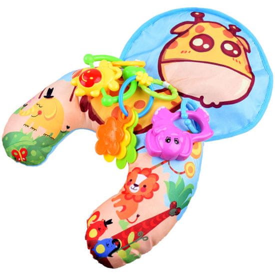 Stabilizacijska blazina vam bo prišla prav pri negi vašega malčka. Vzglavnik v senzacionalni grafiki s šumečo blazinico in pisanimi ropotuljicami bo zagotovil veliko zabave za vsakega malčka.