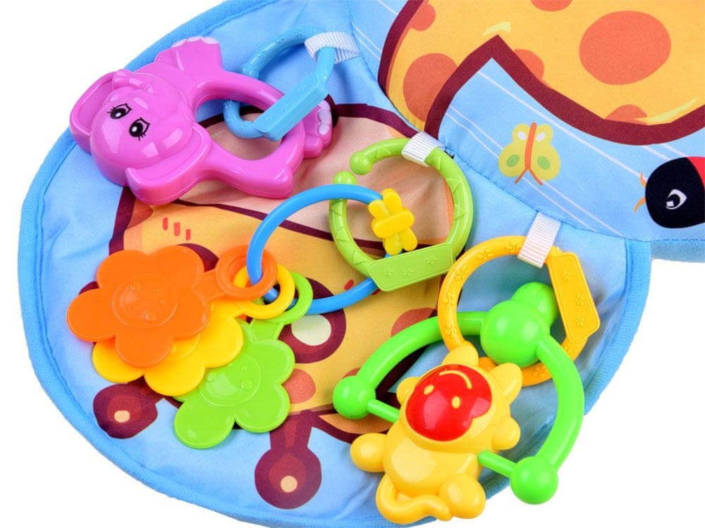 Granje na blazinici spodbuja čutila vida, sluha in dotika. Živahne barve bodo pritegnile pozornost malčka in podprle sposobnost razlikovanja oblik in barv. Škratke bodo pozitivno vplivale na razvoj sluha in koordinacije rok – otroka lahko pustite, da se z njimi prosto igra, ali pa jih pritrdite na mehak valjček.