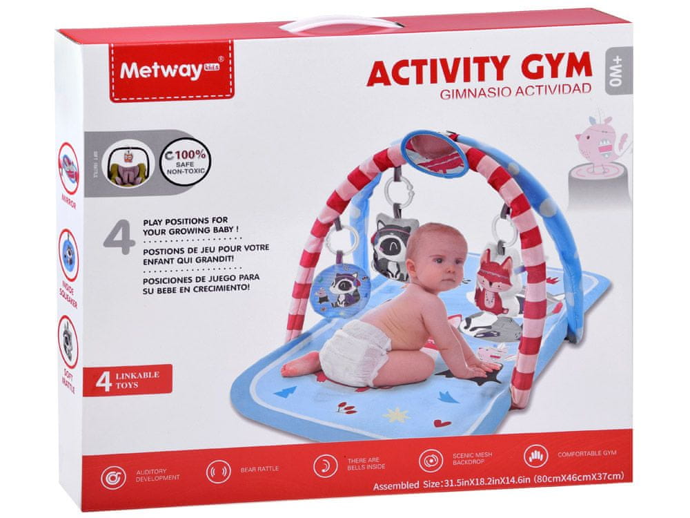 Prikupna otroška podloga je nujna že od prvih dni dojenčka. Podloga se bo dobro obnesla pri previjanju, kasneje se bo otrok zanimal za igrače, ki visijo na naglavnem traku, segal po njih, se igral. Podloga v čudovitih barvah, mehka, iz materiala, ki se lahko čisti, bo popolna za vsakodnevno nego dojenčka. Podloga ima poleg odlične grafike tudi loke, na katere so pritrjene igrače. Podlogo lahko zvijete in jo vedno vzamete s seboj, tako da se lahko dojenček udobno vrti, npr. ko je na obisku pri babici.