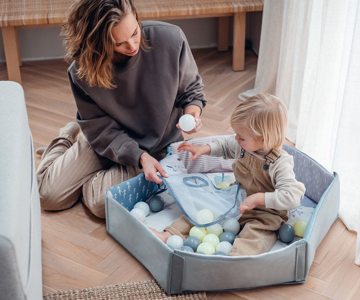 Spoznajte novo otroško igralno podlogo MoMi PASTEL! Služi vam lahko kot igralna podloga, podloga za učenje, stajica ali suhi bazen s žogicami. Z njo dobite veliko možnosti igranja, ki jih bo vaš malček oboževal!