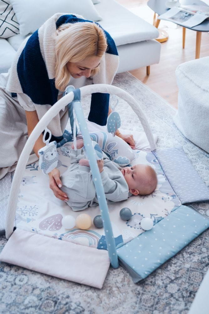 • Podlogi je priloženih 5 igrač, ki jih lahko obesite na palico ali jih uporabljate samostojno. Dojenček bo zagotovo užival v šelestečih igračah in se zabaval, vi pa se boste lahko sprostili. Vse to je na voljo v pastelnih barvah, ki so prijetne na pogled.