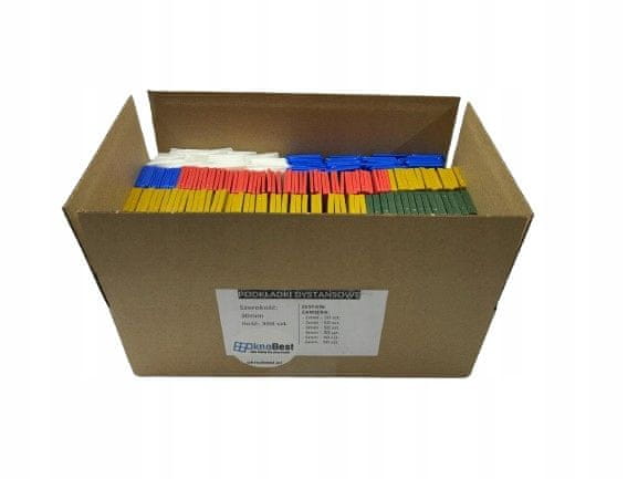 KOMPLET MONTAŽNIH DISTANČNIKOV (MEŠANICA) 300 kosov ⚙️ Širina – 30 mm. Distančniki, znani tudi kot poravnalne podložke, se uporabljajo za pravilno pritrditev stekla v okenski okvir. Podložke so izdelane iz trpežnega polipropilena v različnih barvah. Barva podložk ustreza njihovi debelini. Montažni klini so izdelani iz visokokakovostne polipropilenske plastike, zaradi česar so distančniki zelo trpežni, nevpojni in odporni proti zmrzali. ⚙️ KOMPLET VSEBUJE: ✅ Bela blazinica 1×30×100mm – 50 kosov. ✅ Modra blazinica 2×30×100mm – 50 kosov. ✅ Rdeča blazinica 3×30×100mm – 50 kosov. ✅ Rumena blazinica 4×30×100mm – 50 kosov. ✅ Zelena blazinica 5×30×100mm – 50 kosov. ✅ Črna blazinica 6×30×100mm – 50 kosov. Skupaj 300 kosov (+/- 2%) = 1 paket ⚙️ PREDNOSTI DISTANČNIKOV IN KAKO SE UPORABLJAJO: Distančniki se uporabljajo pri proizvodnji in zasteklitvi lesenih, plastičnih in aluminijastih oken. Podložke zagotavljajo distančnik za steklo, kar zagotavlja pravilno geometrijo okna in zagozdi steklo v okenskem okvirju. Visokokakovostno barvilo, uporabljeno med proizvodnjo, preprečuje kemično reakcijo med tesnilno maso v izolacijski stekleni enoti in profilom. ✅ Pod tramovi na kompozitni terasi ✅ Pri polaganju ploščic in izravnavanju tal ✅ Za montažo in izravnavo fotovoltaičnih inštalacij ✅ Pri proizvodnji oken in vrat ✅ V zasteklitvenih enotah v različnih vrstah stavb ✅ Za izravnavo strešnih letev ✅ V kamnoseštvu ✅ Razmik med različnimi elementi