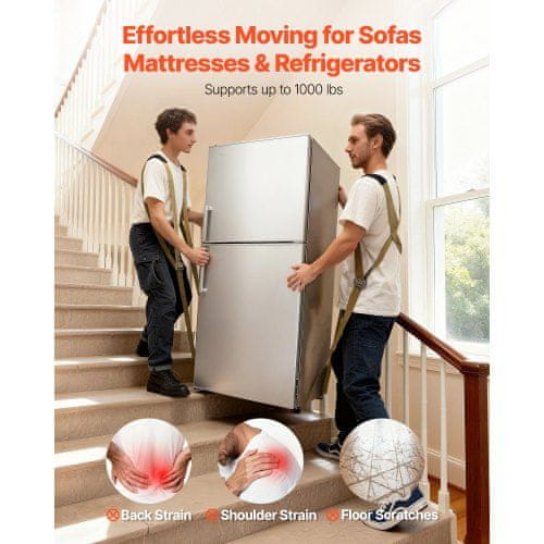 Ta 2-osebni sistem za dvigovanje in premikanje je zasnovan za lažje in varnejše prenašanje težkega pohištva aparatov in vzmetnic. Opremljen z nastavljivimi ramenskimi trakovi in trpežnimi materiali ergonomsko razporeja težo za zmanjšanje obremenitve in izboljšanje stabilnosti med premiki. Komplet vključuje nedrseče rokavice in torbo za shranjevanje primeren je tako za domačo kot industrijsko uporabo.