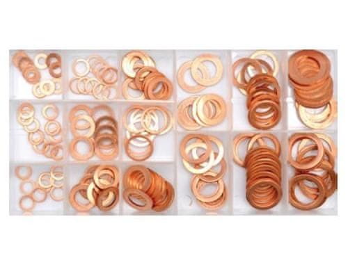Komplet bakrenih podložk za uporabo v delavnici. Celoten opis