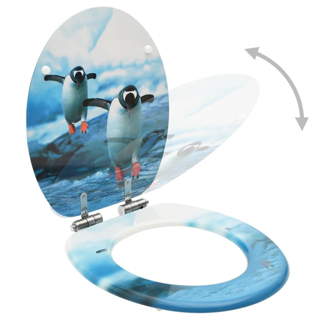Vidaxl Deska za WC školjko s pokrovom 2 kosa mediapan dizajn pingvina