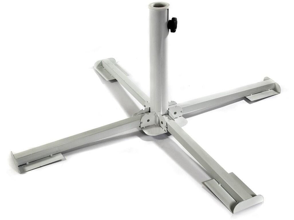 Zložljivo kovinsko stojalo s plastičnim vložkom je primerno za pritrditev vrtnega senčnika, zunanjega sušilnika ali kot stabilno sidrišče za vrtno utrdbo. Po razstavitvi je treba stojalo obtežiti z betonskimi tlakovci, da se zagotovi stabilnost. Tlakovci niso priloženi, največja velikost tlakovcev za pripravljene kovinske noge je 40 × 40 cm.