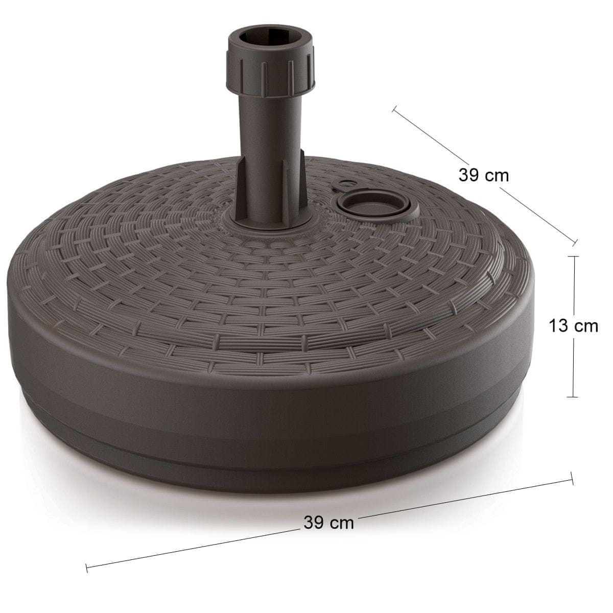 Podstavek za senčnik MPOR 10 l – rjav je moderen in praktičen dodatek za vsak vrt. Ta izdelek je izdelan iz kakovostne plastike, ki je odporna na vremenske vplive. Njegova temno rjava barva doda eleganco in stil.