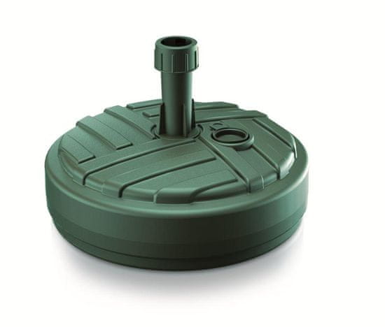 Plastična okrogla podlaga za vrtni senčnik. Ko je napolnjen z vodo, zagotavlja dovolj trdno podlago. Podstavek je primeren za senčnike s palico premera 24–30 mm. Barva: zelena dolžina: 390 mm Širina: 390 mm Višina: 130 mm Teža: 731 g Prostornina: 10 l Material: plastika