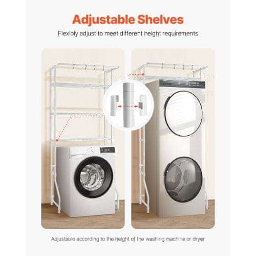 VEVOR Polica za shranjevanje nad pralnim in sušilnim strojem 86x30x1965 cm bela