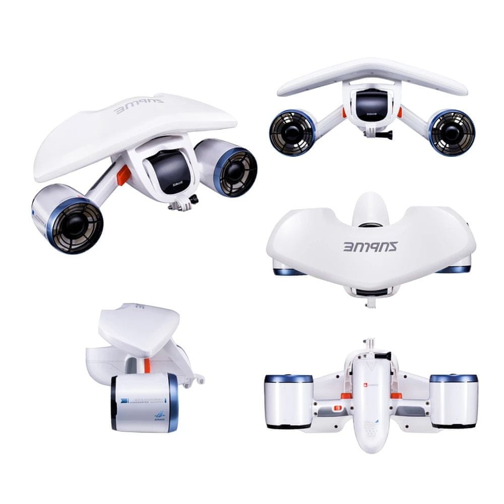 White Shark MIX je izjemen izdelek za gibanje v vodi in pod vodo (podvodni skuter) podjetja Sublue. Sublue Underwater AI Co.Ltd. je vrhunsko kitajsko podjetje, ki se ukvarja z raziskavami in razvojem podvodnih robotov. Podjetje je ponosno na svojo ekipo raziskovalnih strokovnjakov in inženirjev z več kot 10-letnimi izkušnjami na področju razvoja robotov za gibanje in delo v vodi. Uspelo ji je doseči preboj pri številnih ključnih vprašanjih na tem področju. Podjetje ima tehnološko osnovo, ki mu omogoča pridobitev številnih patentov na tem področju. Sublue lahko ustvari posebne robote, prilagojene potrebam strank. Prek nemškega podjetja sk8te4u, ki sodeluje pri razvoju tega podvodnega skuterja in je naš partner, prihaja White Shark MIX k nam. White Shark MIX je izdelek, zasnovan za običajne uporabnike in potapljače, ki se radi gibljejo v vodi in pod vodo ter zahtevajo vrhunsko tehnologijo za največjo zabavo in uporabnost.