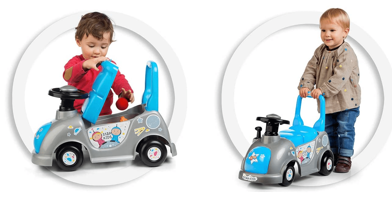 Detsko kolo za vse male voznike. Najprej bo služilo kot hodulja za otroke med njihovimi prvimi koraki. Izdelano je iz visokokakovostne in trpežne plastike. Zaščite, ki preprečujejo prevračanje naprej in nazaj. Vključuje prostor za shranjevanje pod sedežem.