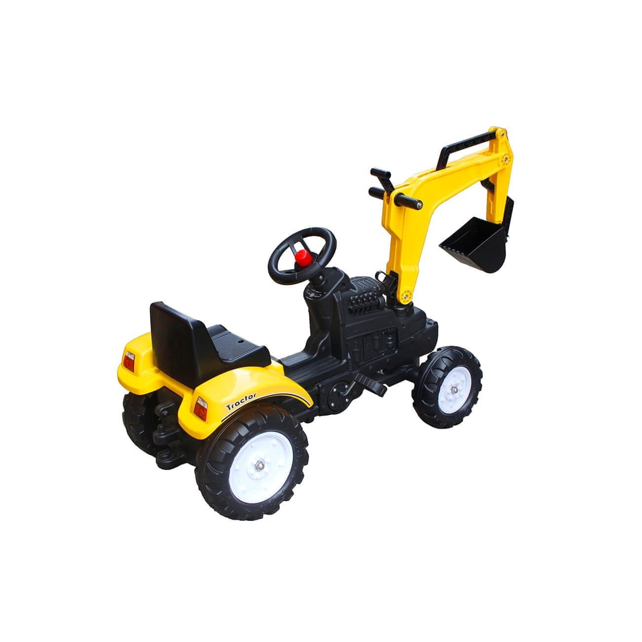 Robusten otroški traktor na pedala z bagerjem odlikujejo zabavni dodatki in kakovostna oprema. Posebna značilnost za otroke je bager, ki ga je mogoče enostavno upravljati z vzvodom, kar malim graditeljem olajša kopanje, nalaganje in razlaganje materiala. Za vožnjo pa je traktor super opremljen z robustnimi kolesi iz debele plastike, ki zagotavljajo pravi užitek v vožnji, in otrokom prijaznimi pedali, ki med vožnjo varčujejo z energijo. Na voljo je tudi praktično naslonjalo za hrbet, da je vožnja čim bolj udobna, in sirena, da se vsi umaknejo s poti, medtem ko mali traktorist upravlja progo. Pravo vozilo za kopico zabave in iger.