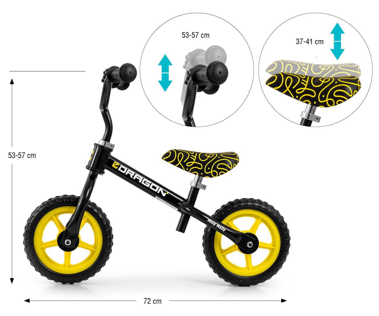 DRAGON balance bike je idealna rešitev za otroke, ki se šele učijo voziti balance bike. Ta kolo nima pedalov, kar otroku omogoča, da se osredotoči na učenje ohranjanja ravnotežja in smeri.