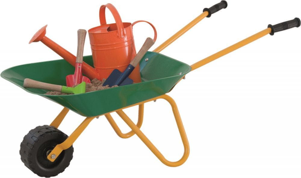 Ta robustna samokolnica bo videti čudovito v vašem vrtu in otroški sobi Udobni ročaji omogočajo enostavno potiskanje, kovinski nosilci pod samokolnico pa omogočajo, da jo odložite, ne da bi se prevrnila