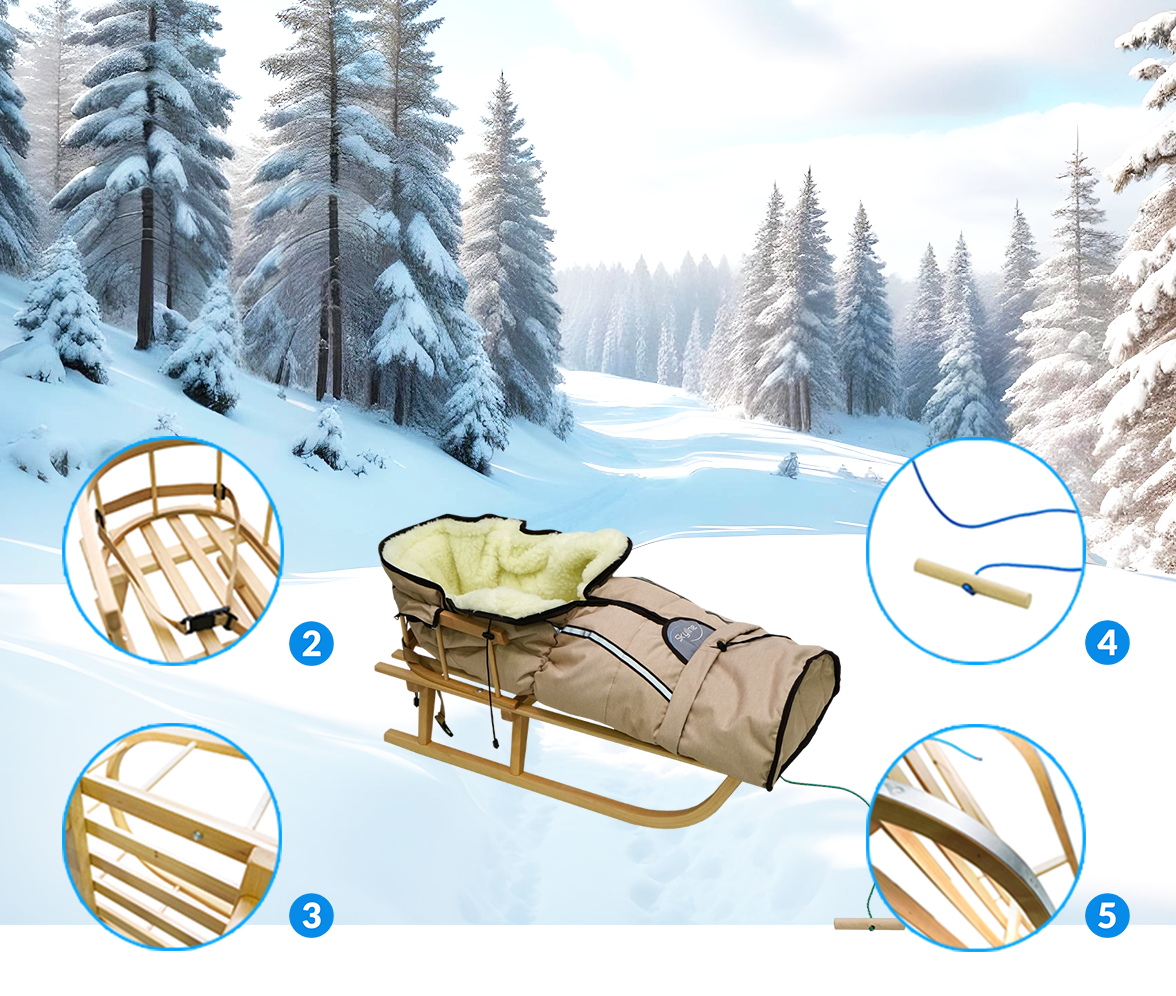 Sani so pakirane v kartonski škatli, samo privijte naslonjalo in lahko uživate v zimskih radostih