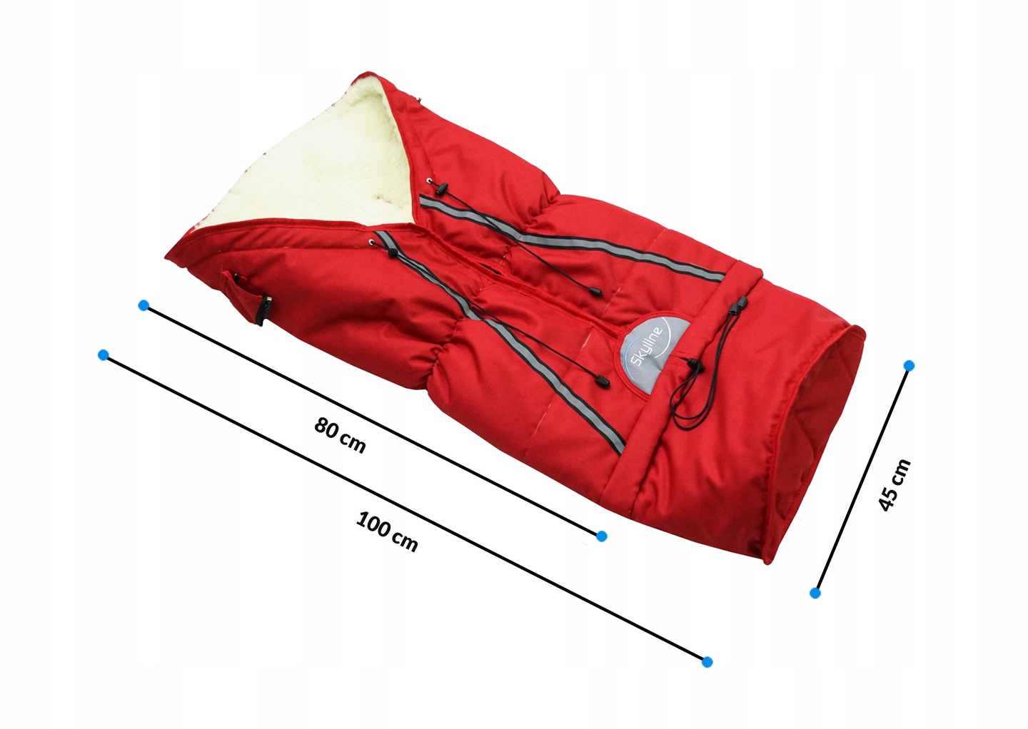 Dimenzije spalne vreče: Celotna dolžina / dolžina po odpenjanju spodnjega dela 100/80 cm, širina 45 cm
