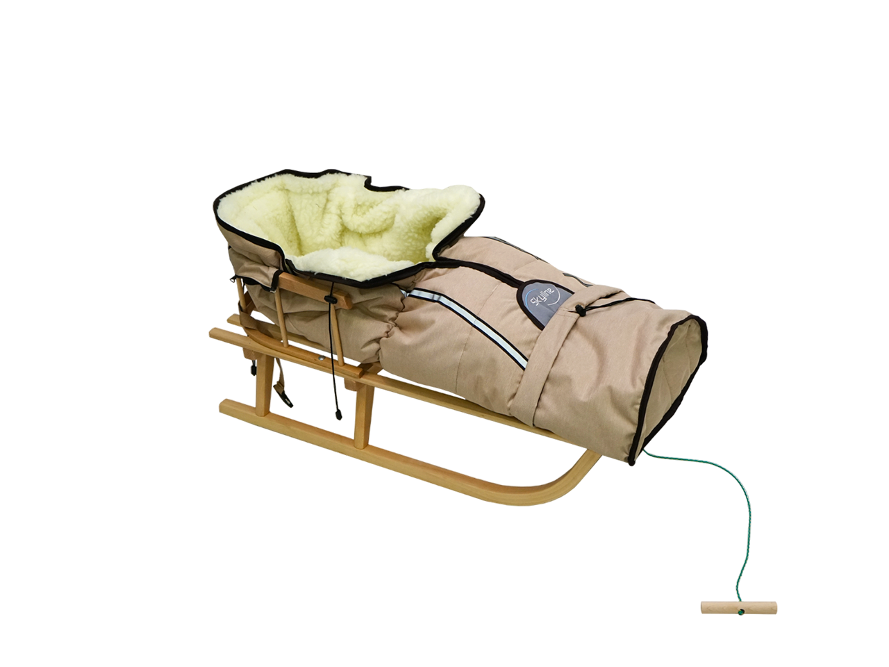 Vrečka za noge za sani; lahko se uporablja tudi z vozičkom ali avtosedežem. Izdelana je iz ekskluzivnega lanenega materiala, ki poudarja edinstvenost sani. To ni poceni poliester! Notranjost vrečke za noge je izdelana iz okolju prijaznega krzna (ovčja volna).
