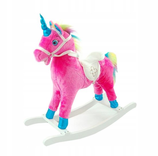 Mavrični disko konjiček je čudovit gugalni konjiček samorog, ki bo pritegnil pozornost vsake male princese. Njegova zanimivost je, da oddaja zvoke – ko pritisnete na eno uho, bo otrok slišal topot galopirajočih kopit, ko pa pritisnete na drugo, bo konjiček rezgal. Ko konjiček začne rezgal, odpre gobec! Konjiček ima okoli vratu svetleče srce. Ko ga dlje časa držite za uho, mu srce utripa z rdečo lučjo.