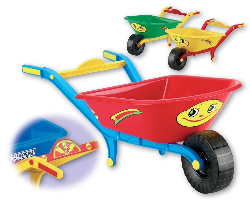 Velika, trdna samokolnica za otroka, izdelana iz varnih materialov.