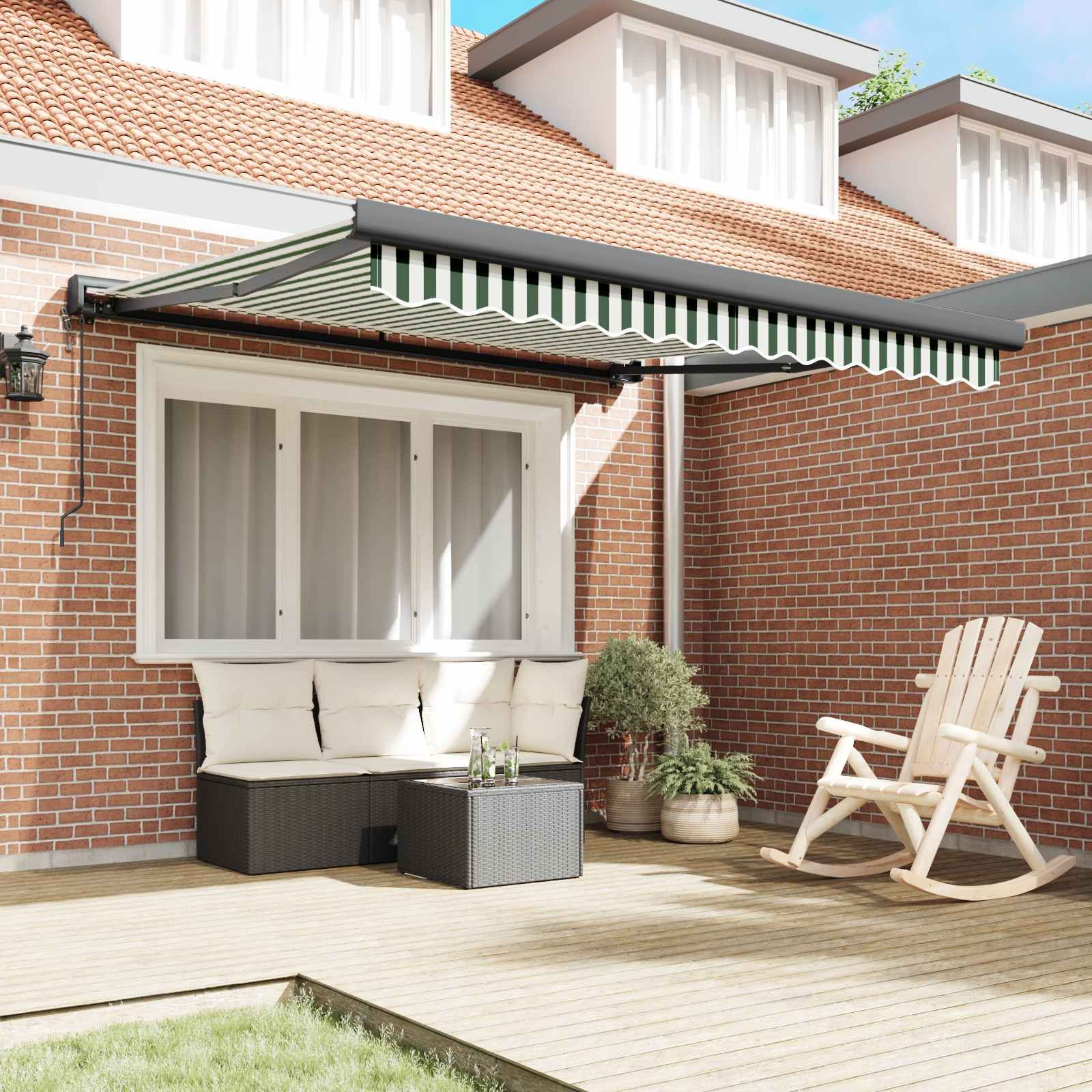- Vzdržljiv poliester in aluminij: Močna konstrukcija iz poliestra in aluminija zagotavlja trdnost, lahkost ter stabilnost v vseh vremenskih razmerah. UV-odporno blago ščiti pred močnim soncem, medtem ko aluminijasta konstrukcija zagotavlja dolgotrajno uporabo brez poškodbe. Ta pametna kombinacija omogoča brezskrbno uživanje pod vašo tendo in ohranja njen videz ter funkcionalnost skozi čas.