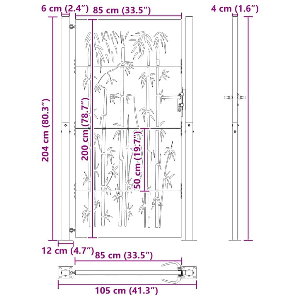 Vidaxl Vrtna vrata 100x200 cm kortensko jeklo bambusov dizajn