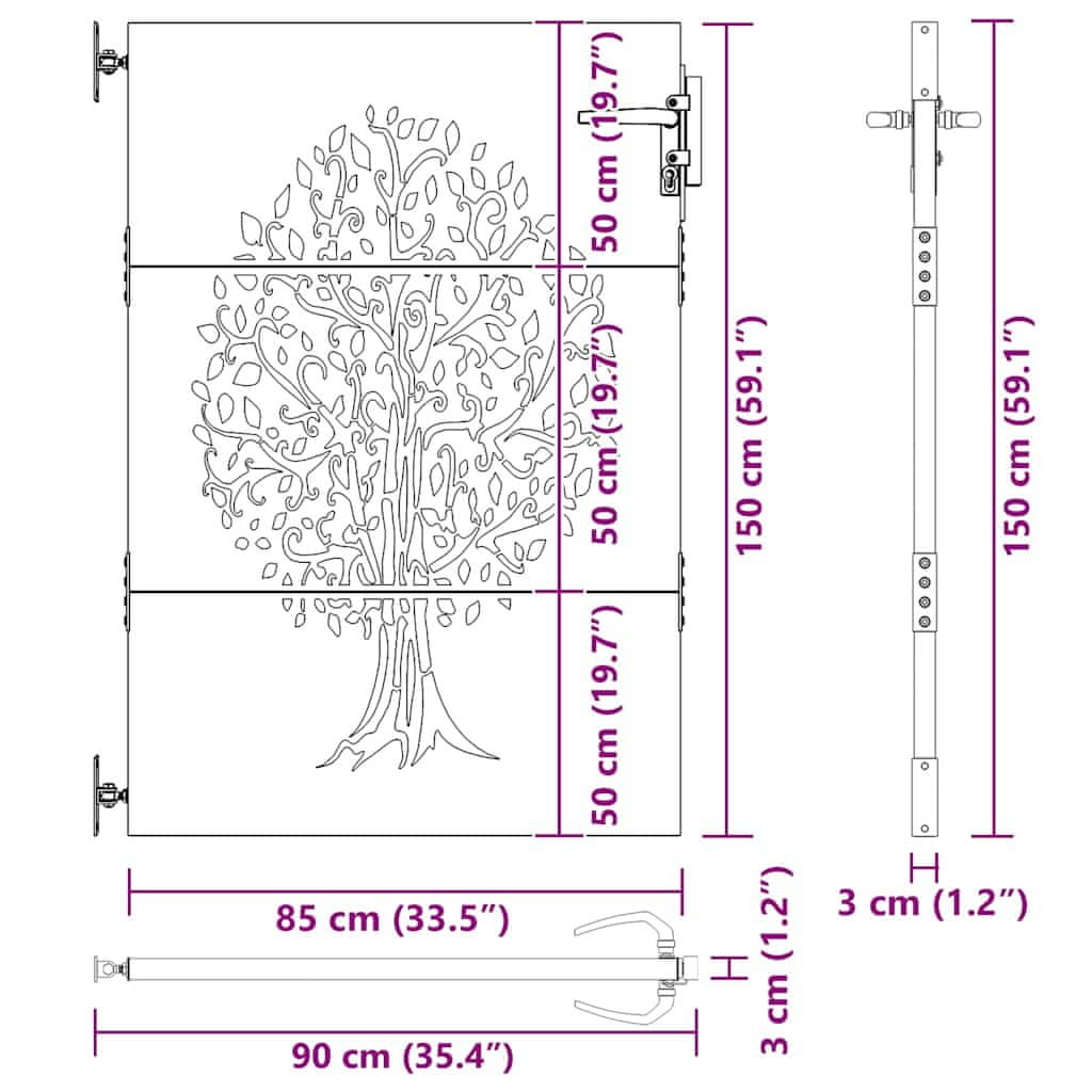 Vidaxl Vrtna vrata 85x150 cm iz kortenskega jekla z motivom drevesa