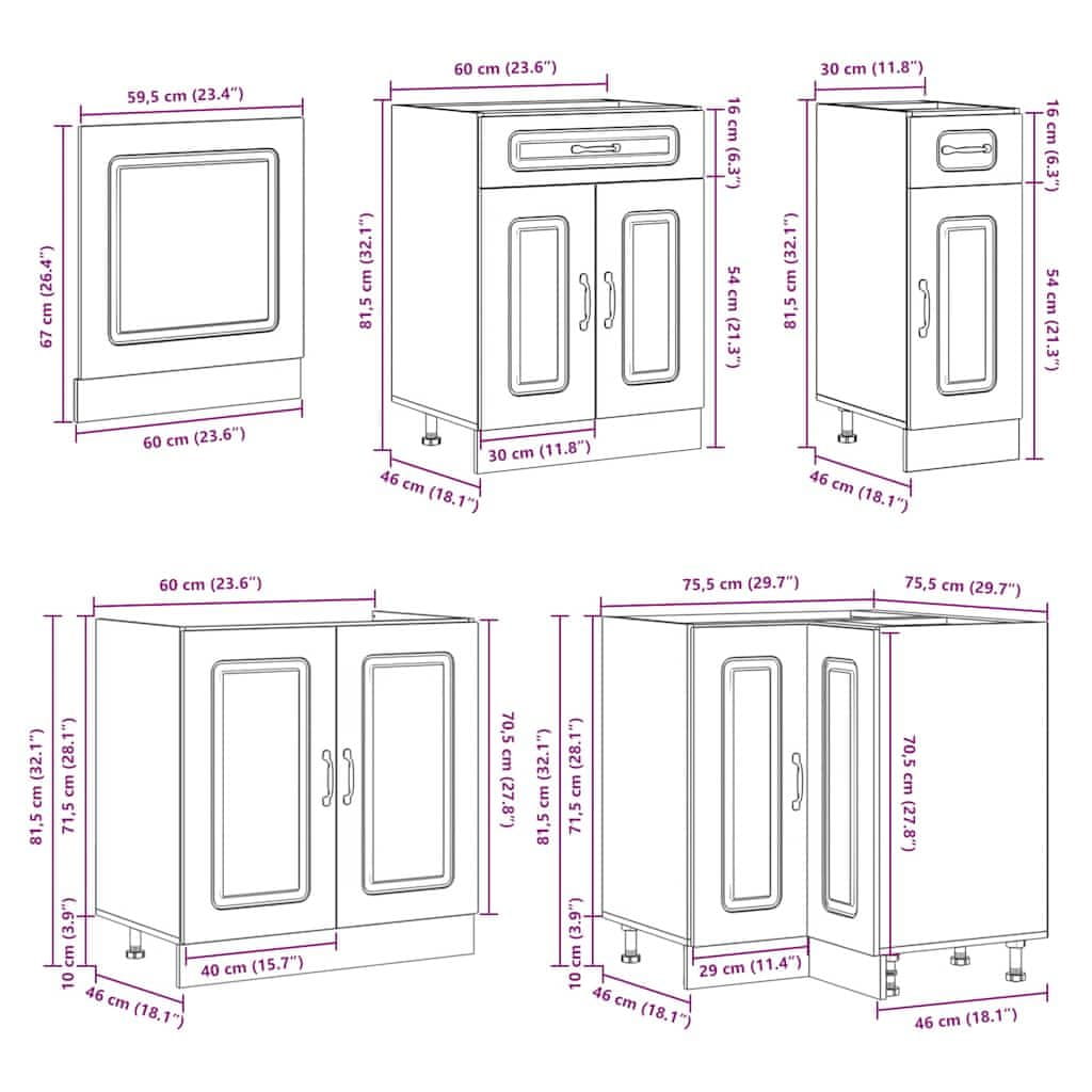 • 1 x kuhinjska kotna omarica: 75,5 × 75,5 × 81,5 cm (Š x G x V)