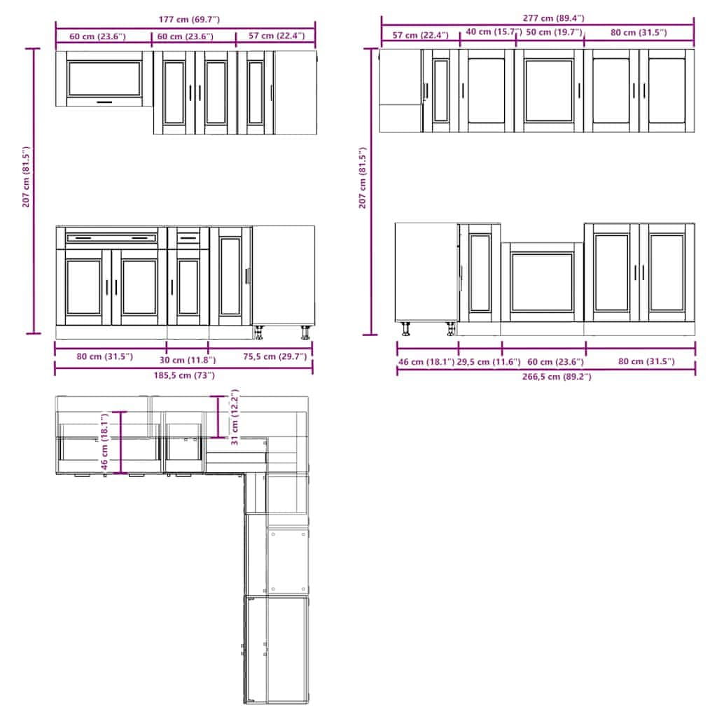 Vidaxl 11 kosov kuhinjska omarica Porto starinski les inženirski les